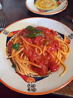 They also brought out a water pitcher. But not just any old pitcher — this one was shaped like a rooster! Since we first arrived in Naples, we keep seeing these hand-painted rooster pitchers sold all over the place. We had to know the story behind them. The short version is that the Medici family (led by Giuliano and his brother, Lorenzo the Great) ruled the Republic of Florence in 1478. The Pazzi family was not a fan of the Medici family and plotted to kill Giuliano (who, unfortunately, did not have as cool of a nickname as his brother). The Pazzi family knew that Giuliano loved to throw elaborate festivals, so they suggested a grand festival in a new village. After the festival was over and Giuliano was asleep from wine, the Pazzi’s assassins tried to make their way through the village. However, they did not do it quietly and awoke the roosters, which started to crow. This roused he whole village and the assassins were captured and executed. Giuliano was so grateful to the roosters that he held another festival the next night and had the artisans of the area make ceramic rooster pitchers. He then gave these pitchers to all of the peasants in the area as a symbol of good luck and to help ward off evil. For this reason, rooster pitchers have become common housewarming or wedding gifts.