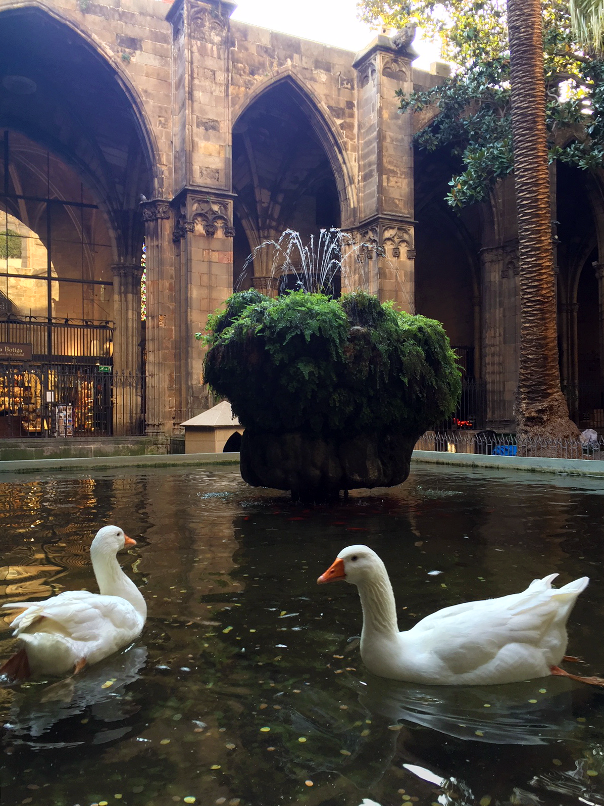 This church’s official name, translated, means “Cathedral of the Holy Cross and Saint Eulalia.” Saint Eulalia is the co-patron saint of Barcelona. Her story unfortunately had a swift end. She met her untimely end at thirteen years old when Emperor Diocletian ordered for all Christians to be killed. You’ll find her crypt at the cathedral and shrines where you can pray and light a candle. There’s also a Gothic cloister that houses thirteen geese, another homage to Saint Eulalia.