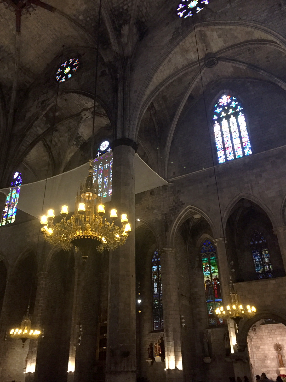 The Basilica Santa Maria del Mar is not the most elaborate church in Barcelona, but it’s still worth seeing. The outside is simple, but the inside much more ornate. This church has been through a lot in the years. It was built and consecrated on August 15, 1384 and survived an earthquake in 1428 that caused a lot of causalities and destroyed the rose window. During the Spanish Civil War in 1936, rioters against the clergy sacked the church. It burned for 11 days straight, but survived and is still as grand and beautiful as ever.