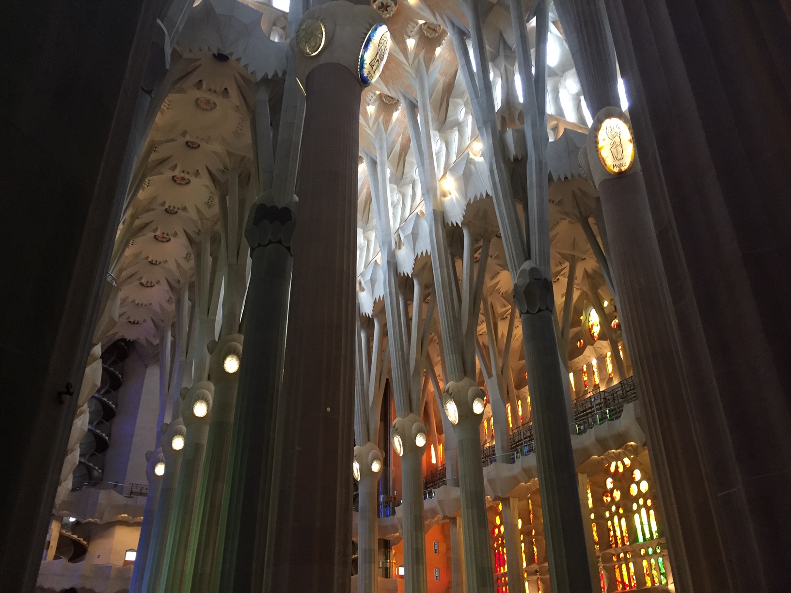 The interior is meant to evoke nature, as if you’re standing outside among the trees. Gaudí felt like you were closer to God when you were out in nature. He also felt that with nature there are no straight lines, so he tried to implement that in all his works.