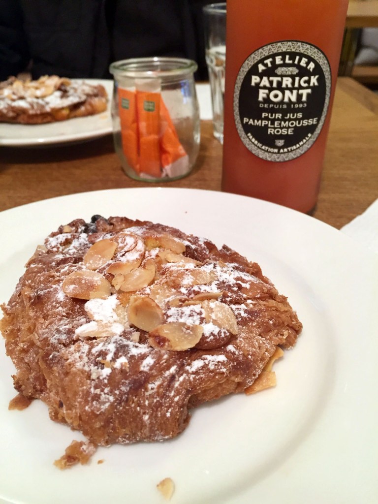 This pastry shop was so cute and quaint. You can either take the food to go or there is seating in the other room. While we were here we got coffee and tried a fun juice by Atelier Patrick Font with a pure pink grapefruit juice flavor. All of the pastries and desserts looked amazing, but we ended up going with this almond croissant with shaved almonds and powdered sugar on top AND a cream type filling on the inside. It was so good! We were tempted to go back here and get another one, but we wanted to try some other bakeries in the area.