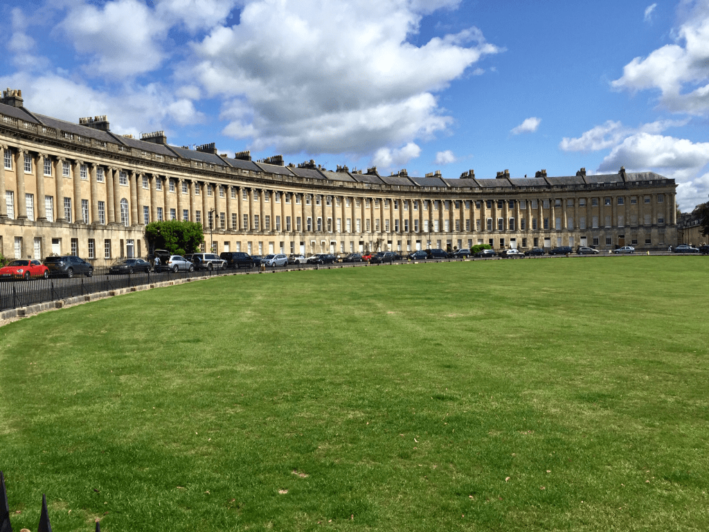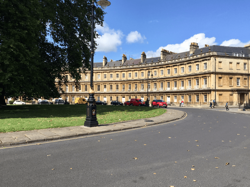 These buildings are known as “The Circus” because they are in the shape of a ring. They go all the way around with three entrance areas and a patch of grass with a tree in the middle of the circle. These buildings are a great example of Georgian architecture and were constructed between 1754 and 1768. It is said that the architect referenced Stonehenge’s diameter when building The Circus. There have even been a few famous people that have stayed in these buildings such as artist Thomas Gainsborough and actor Nicholas Cage.