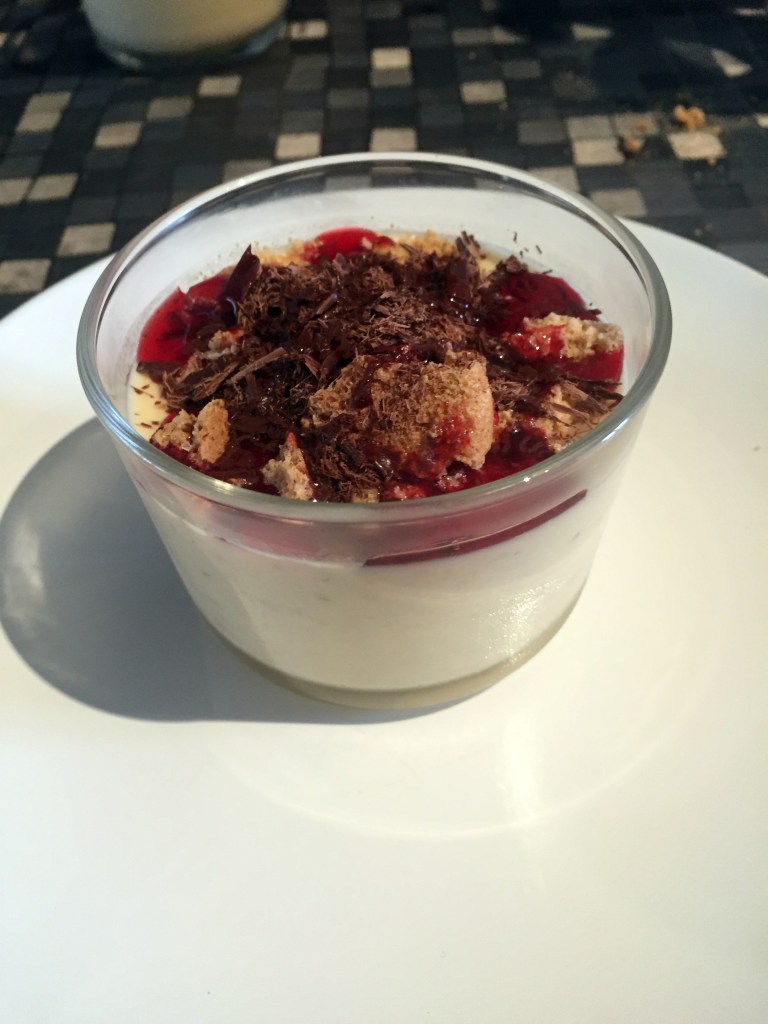 For our dessert, we learned how to make a panna cotta with peaches, caramelized peaches, amaretti biscuits, and shaved cocoa. This dish was surprising because we never realized the proper and better way to make a panna cotta. He informed us that the panna cotta you see in cups (like the one he showed us how to make) are more traditional and better tasting because they have less gelatin, while the ones that can hold their own form more gelatinous and will not melt in your mouth. A lot of restaurants do the latter because it looks prettier, he said, but it will not taste as good. After trying his version (and we have also tried the other version), we have to agree he was right! It was so delicious and now we will be looking for restaurants that make it more like that. Once he was done with the class, he even emailed us the recipes, so it is something we can make later! We don’t make it a lot in our household just because it is very rich, BUT we always make it a priority to make it sometime in October to celebrate our time there (and, you know, the whole correlation between chocolate and Halloween).